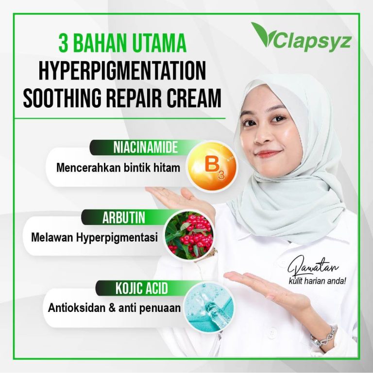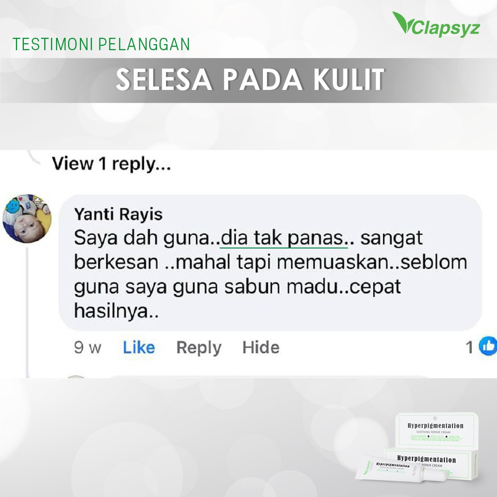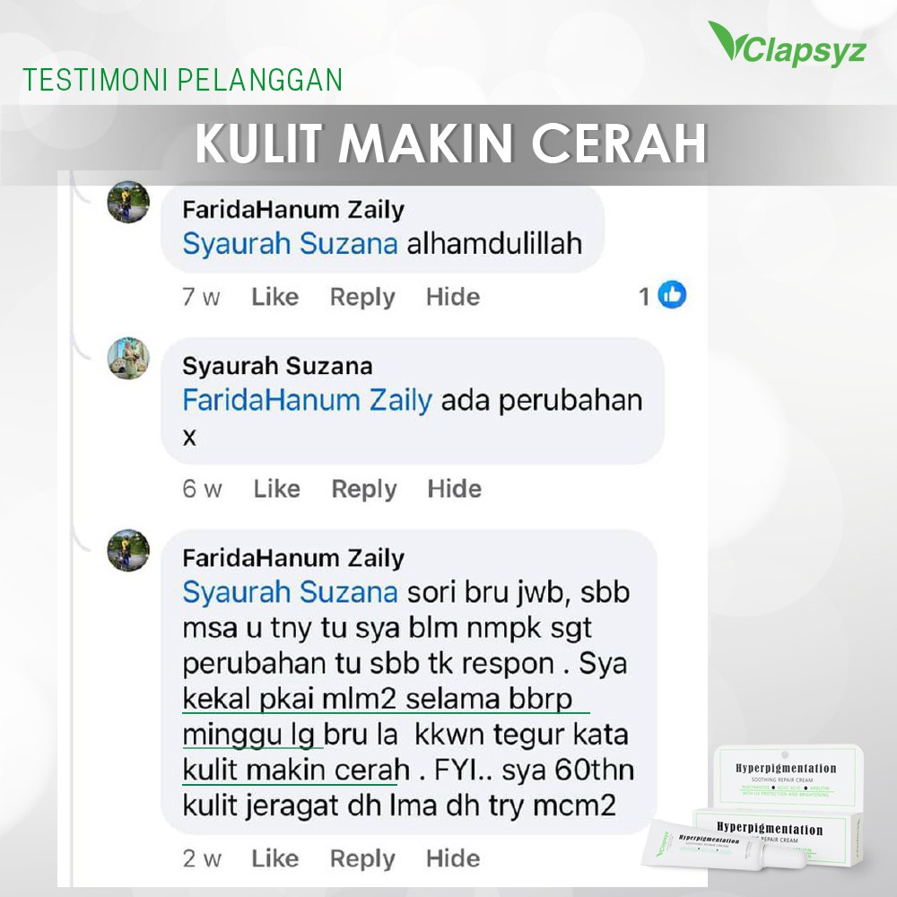 Clapsyz Hyperpigmentation Soothing Cream dibuat di Malaysia hasil kajian dermatologi dari Korea.