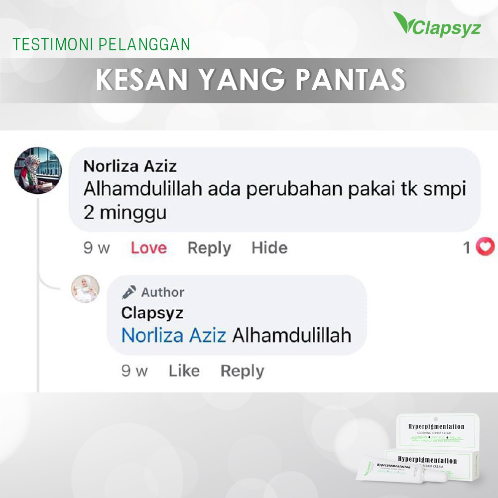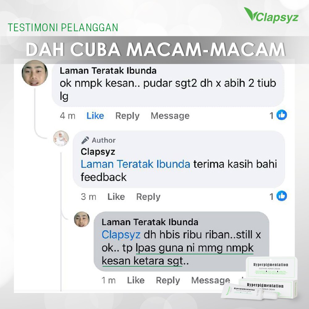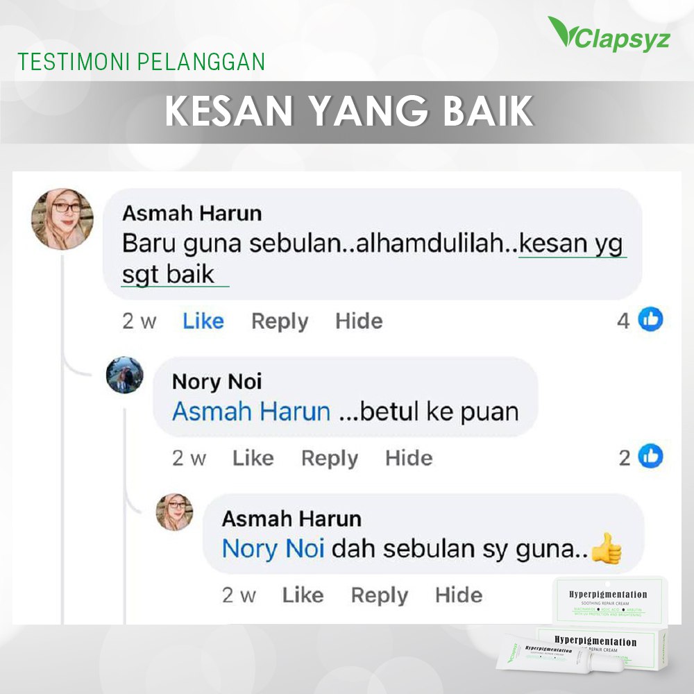 Clapsyz Hyperpigmentation Soothing Cream dijamin selamat kerana berdaftar dengan KKM. Boleh refer di website KKM.