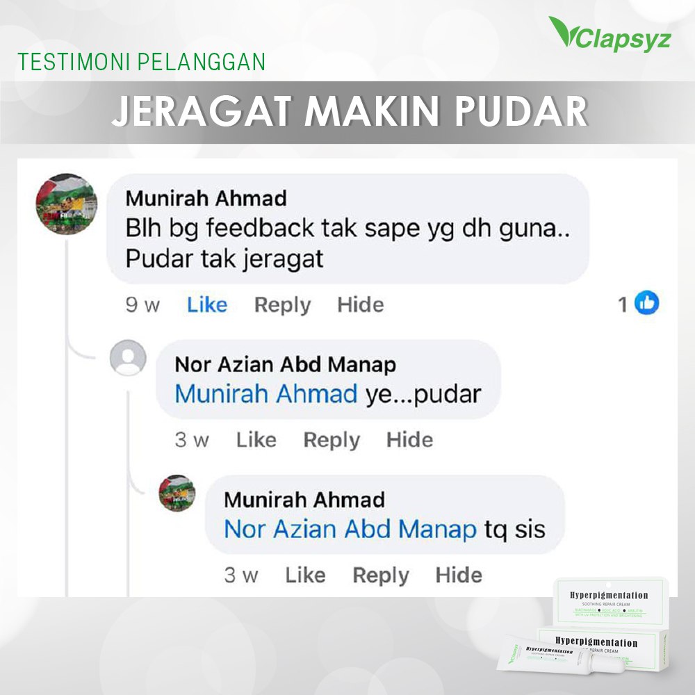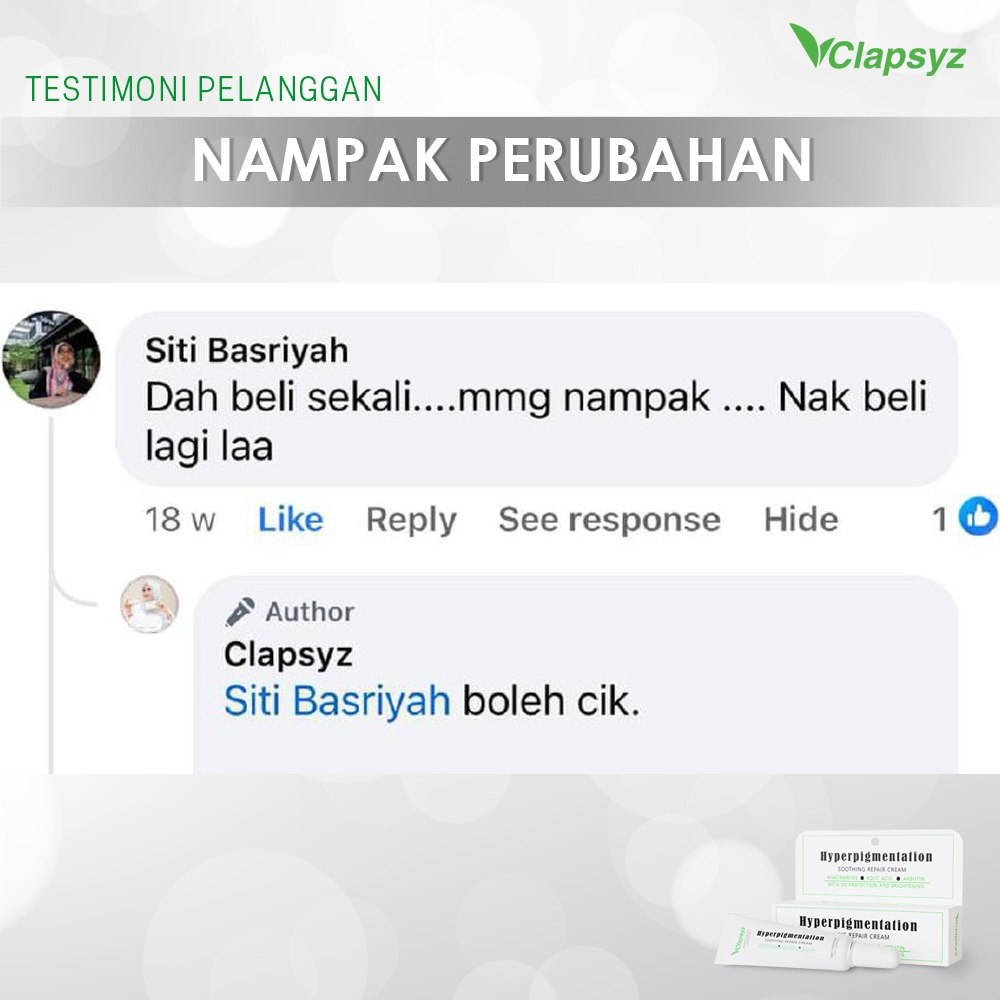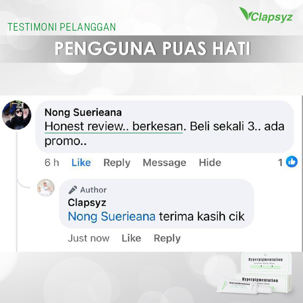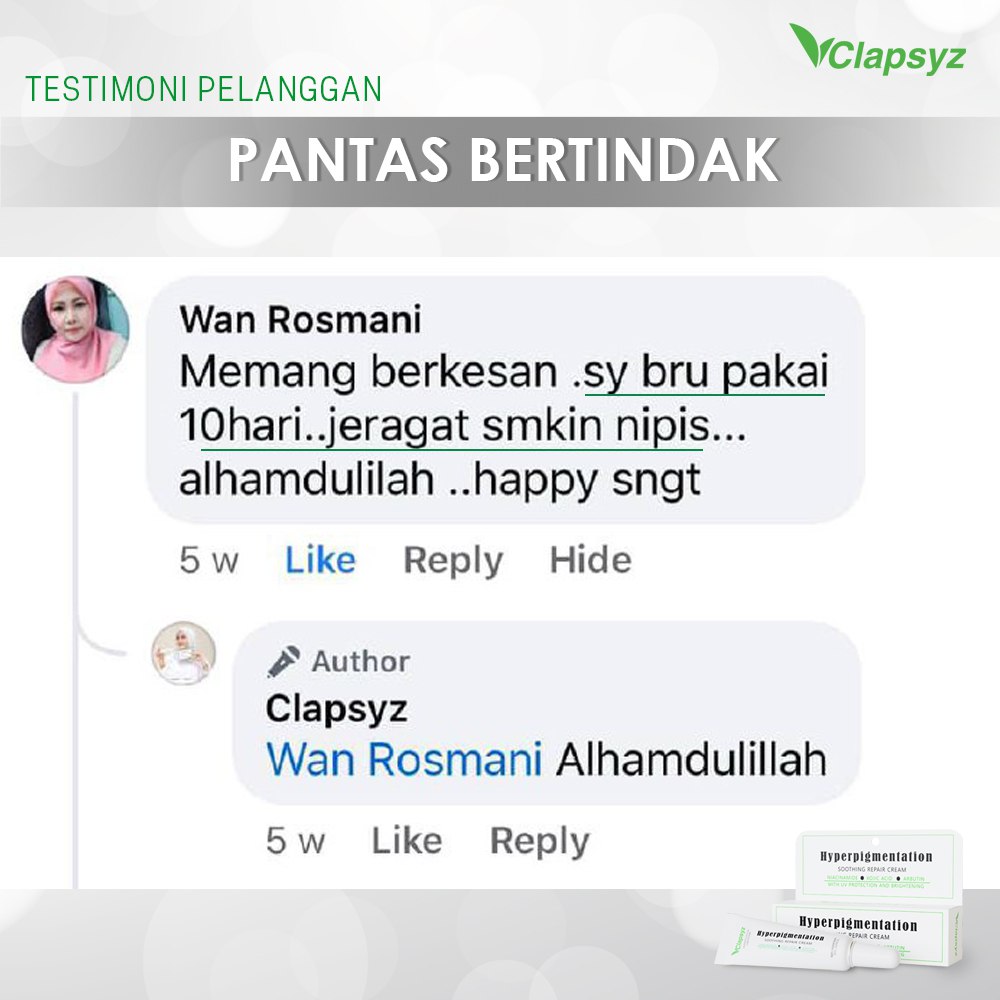 Clapsyz Hyperpigmentation Soothing Cream dijamin selamat kerana berdaftar dengan KKM. Boleh refer di website KKM.